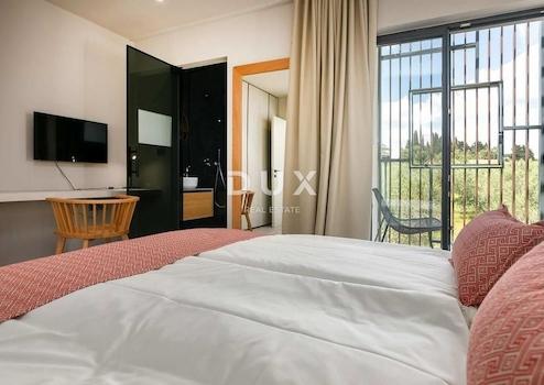 Eine der außergewöhnlichsten modernen Villen Istriens steht zum Verkauf. Sie befindet sich in Kaštelir, etwa 10 km von Poreč entfernt. Die Villa besticht durch ihr herausragendes Design und ihre Architektur, die auf den ersten Blick mit ihrem einzigartigen Konzept von fünf separaten, durch Korridore miteinander verbundenen Wohneinheiten fasziniert. Im Zentrum befindet sich ein wunderschöner Außenpool, der sich im hinteren Bereich in einen Whirlpool verwandelt.