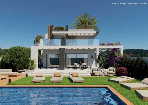 Diese elegante, neu erbaute Villa ist darauf ausgelegt, den mediterranen Lebensstil in vollen Zügen zu genießen. Ihre moderne Architektur, die großzügigen, offenen Bereiche und der fließende Übergang zwischen Innen- und Außenbereich schaffen ein helles, funktionales und komfortables Zuhause.