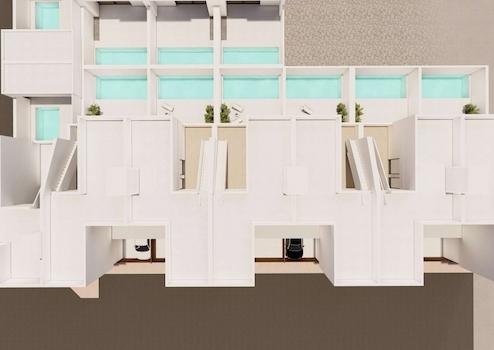 Der Komplex umfasst 7 geräumige Doppelhaushälften, jeweils mit eigenem Pool, Terrasse und großem Solarium.
