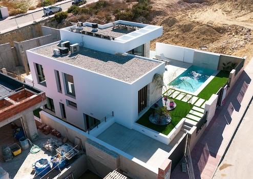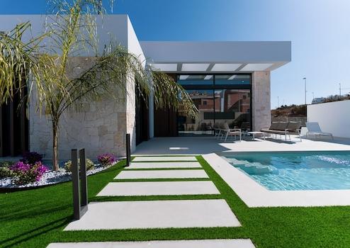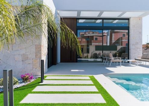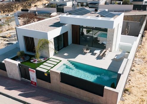 Diese moderne Villa in Rojales bietet drei Schlafzimmer, zwei Badezimmer, einen privaten Swimmingpool und einen Stellplatz auf dem eigenen Grundstück. Hochwertige Einbauschränke, durchdachte Raumaufteilung und minimalistische Architektur schaffen ein Zuhause, das Komfort, Eleganz und modernes Wohnen perfekt miteinander verbindet. Große Fenster und offene Wohnbereiche sorgen für viel Tageslicht und eine einladende Atmosphäre, die zum Entspannen und Wohlfühlen einlädt.