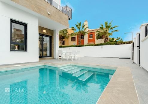 Diese moderne, freistehende Villa befindet sich in einer ruhigen Wohngegend von Torrevieja an der beliebten Costa Blanca und vereint mediterranen Lifestyle mit moderner Architektur und hoher Wohnqualität.