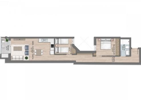 Das Gebäude besteht aus 17 Einheiten mit 1- und 2-Schlafzimmer-Wohnungen, jeweils mit 1 oder 2 Bädern. Darüber hinaus gibt es Penthäuser mit privaten Sonnenterrassen und atemberaubendem Meerblick, perfekt, um den mediterranen Lebensstil zu genießen.