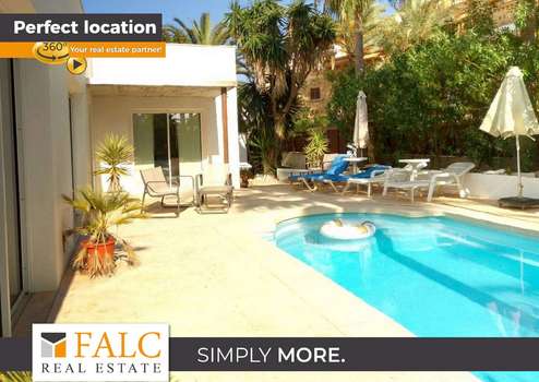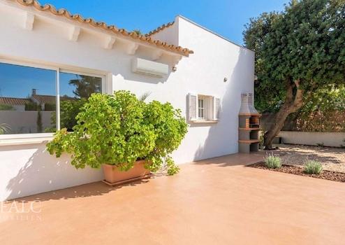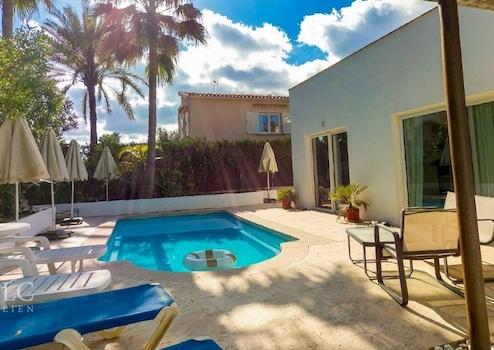 Der Außenbereich lädt zum Entspannen und Genießen ein: Ein gepflegter Garten mit privatem Pool schafft eine kleine Wohlfühloase. Die Terrasse sowie die Dachterrasse mit teilweisem Meerblick bieten schöne Rückzugsorte, um die mallorquinische Sonne und die ruhige Umgebung zu genießen.