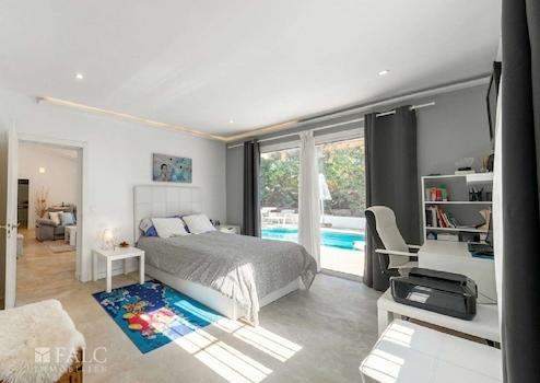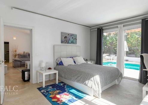 Die Villa verfügt über drei komfortable Schlafzimmer, jeweils mit eigenem Badezimmer en suite sowie Einbauschränken. Die geschmackvoll gestalteten Bäder und die angenehme Raumaufteilung bieten hohen Wohnkomfort und ein harmonisches Wohnambiente.
