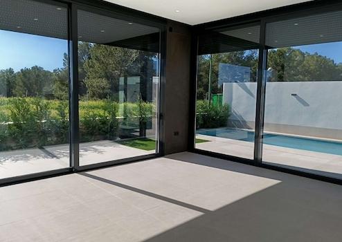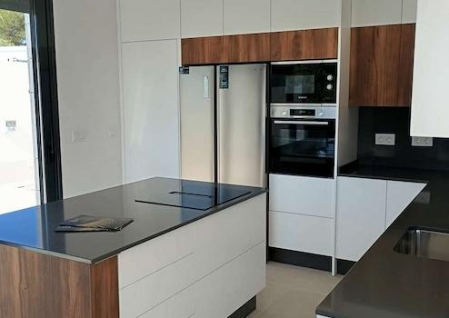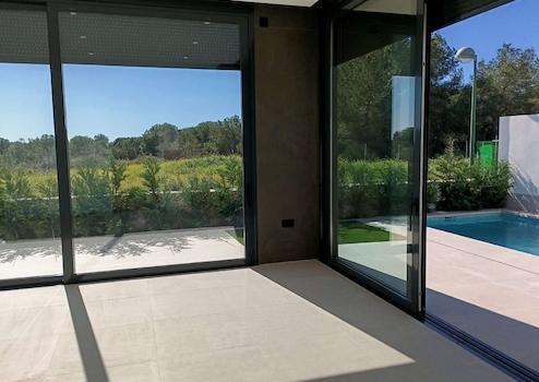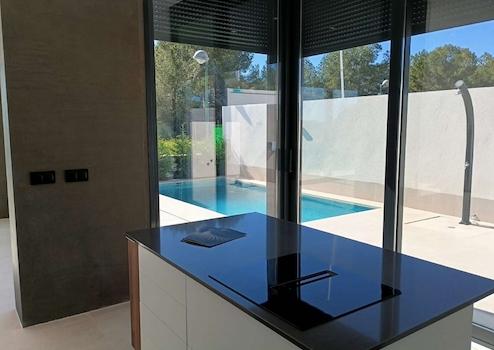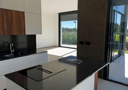 Die Villa verfügt über ein geräumiges und helles Wohnzimmer mit offener Küche, wodurch ein fließender Übergang zwischen den Räumen entsteht - perfekt für den Alltag und zum Bewirten von Gästen. Die Küche ist mit modernsten Geräten ausgestattet und garantiert ein wunderbares kulinarisches Erlebnis. Das lichtdurchflutete Wohnzimmer öffnet sich direkt zur Terrasse, zum Garten und zum Pool und ermöglicht Ihnen so, das Leben im Innen- und Außenbereich in vollen Zügen zu genießen.
