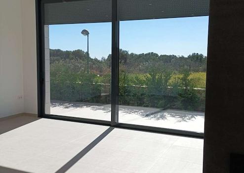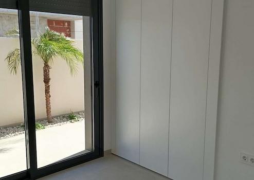 Die Villa bietet drei geräumige Schlafzimmer, alle mit ausreichend Stauraum. Das Hauptschlafzimmer verfügt über ein eigenes Badezimmer für mehr Privatsphäre und Komfort. Die beiden anderen Schlafzimmer teilen sich ein stilvolles Badezimmer - ideal für Familien oder Gäste. Jedes Schlafzimmer hat direkten Zugang zur Terrasse und bietet so einen privaten Rückzugsort zum Entspannen und Erholen.