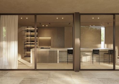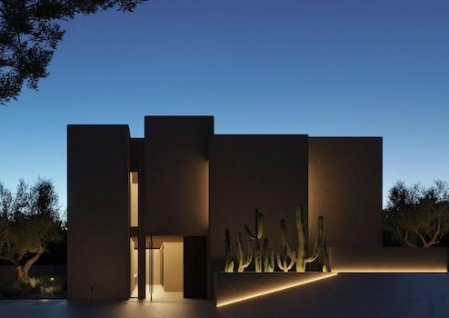 Die Villa erstreckt sich über drei Ebenen - Untergeschoss, Erdgeschoss und Obergeschoss - und beeindruckt bereits auf den ersten Blick durch ihre markante Architektur. Die Fassade aus kubischen Volumen erzeugt ein faszinierendes Spiel aus Licht und Schatten und verleiht dem Gebäude eine zeitlose, moderne Ausstrahlung. Großzügige Fensterflächen durchfluten die Räume mit natürlichem Licht und eröffnen spektakuläre Panoramablicke auf die umliegenden Berge, das Meer und die eindrucksvolle Landschaft.