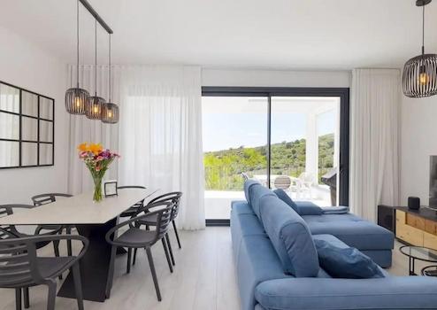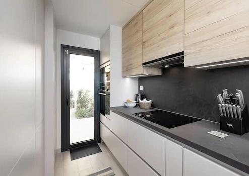Komplett möbliert mit Einbauküche, Schlafzimmereinbauschränke, begehbaren Duschen, Dachterrasse mit Solardusche, Tiefgarage mit zwei Stellplätzen und mit direktem Zugang ins Haus, Gartenanteil, Communitypool mit Paddelplatz und kleinem Spielplatz für Kinder.
