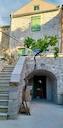 Das Haus erstreckt sich über drei Etagen und bietet ca. 94 m² ansprechend möblierte Wohnfläche. Der Eingang im Erdgeschoss führt durch ein typisch dalmatinisches Gewölbe in den warmen und funktionalen Wohn-, Ess- und Küchenbereich – ein Raum mit mediterranem Flair, der zum Verweilen einlädt. Vor dem unteren Eingang befindet sich ein kleiner, lauschiger Innenhof, ideal für den Morgenkaffee oder entspannte Abende.