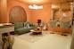 Am Eingang befindet sich eine Rezeption mit Verkaufsregal für Produkte sowie ein maßgefertigter Schrank für Jacken und Mäntel. Der Wartebereich ist gemütlich gestaltet und verfügt über ein bequemes Sofa, Couchtisch, Teppich und einen dekorativen Kronleuchter.