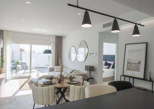 Die Villen bestechen durch ihre hochwertige Ausstattung, durchdachte Raumaufteilung und helle, großzügige Wohnbereiche, die ein angenehmes Wohngefühl schaffen. Die Lage ist ideal: Nur wenige Gehminuten trennen Sie vom Zentrum von San Pedro del Pinatar, wo Cafés, Restaurants und Einkaufsmöglichkeiten auf Sie warten. Gleichzeitig erreichen Sie in kurzer Zeit die traumhaften Strände der Region, sodass Meer und Freizeit direkt vor der Tür liegen.