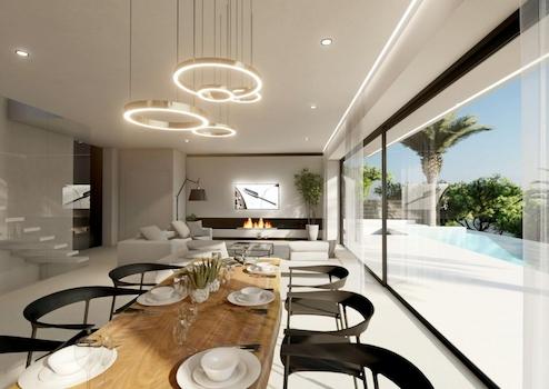 Die 200 m² großen Terrassen laden zu entspannten Stunden unter der Sonne Spaniens ein, während der private Swimmingpool das perfekte Ambiente für Freizeit und Erholung schafft. Hochwertige Materialien wie Techlam-Fliesen, LED-Beleuchtungsschienen, aerothermale Fußbodenheizung, Klimaanlage, ein luxuriöser Kamin und modernste Smart-Home-Technologie sorgen für ein Wohngefühl auf höchstem Niveau.