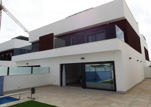 Diese exklusiven Villen in Santiago de la Ribera vereinen modernes Design, höchsten Komfort und eine erstklassige Lage nur 100 Meter vom Strand entfernt. Jede Villa verfügt über drei großzügige Schlafzimmer, drei moderne Badezimmer, praktische Einbauschränke sowie einen privaten Swimmingpool auf dem eigenen Grundstück. Der Wohnbereich ist offen gestaltet und lichtdurchflutet, sodass Innen- und Außenbereiche nahtlos ineinander übergehen und ein Gefühl von Freiheit und Weite entsteht. Der private Stellplatz auf dem Grundstück bietet zusätzlichen Komfort und Sicherheit.