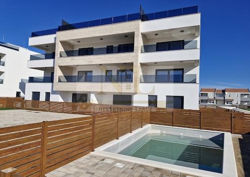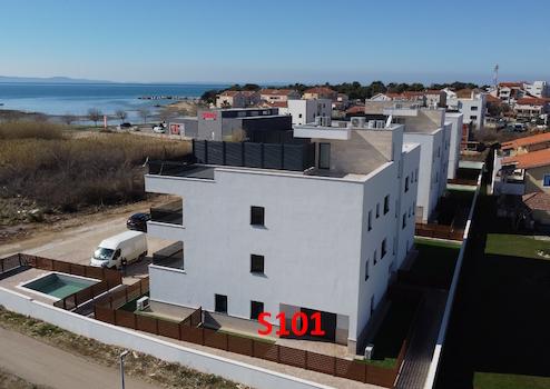 Wir verkaufen eine Gartenwohnung (S101) im Erdgeschoss eines Neubaus in Privlaka bei Zadar. Die Wohnung ist nach Süden ausgerichtet.