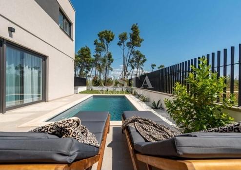 In attraktiver Lage in Privlaka bei Zadar steht eine Doppelhaushälfte mit Pool zum Verkauf. Die Wohneinheit der Doppelhaushälfte bietet eine Wohnfläche von 90 m² und einen 160 m² großen Garten. Sie besteht aus Erdgeschoss und Obergeschoss. Im Erdgeschoss befinden sich ein geräumiges Wohnzimmer, eine Küche mit Essbereich, ein Gäste-WC und ein Eingangsbereich mit Treppe. Das Obergeschoss verfügt über drei Schlafzimmer und zwei Badezimmer. Vom Wohnzimmer gelangt man auf eine großzügige Terrasse mit Garten, Pool, Grillplatz, Liegewiese und einem Innenhof mit privatem Parkplatz.