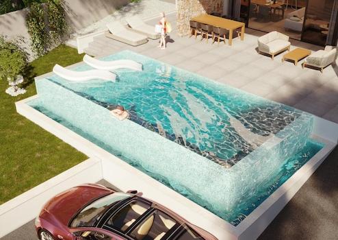 Diese außergewöhnliche Villa vereint exklusives Wohnen mit einem entspannten Lebensgefühl inmitten einer grünen und ruhigen Umgebung. Auf einem großzügigen, vollständig eingezäunten Grundstück genießen Sie ein Höchstmaß an Privatsphäre und Sicherheit. Der Infinity-Pool bildet das Herzstück des Außenbereichs und lädt dazu ein, den Blick über die Umgebung schweifen zu lassen und gleichzeitig die Sonne in vollen Zügen zu genießen.