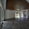 Das Wohnzimmer, das Esszimmer und die Küche befinden sich in einem einzigen Raum mit großen Fenstern, die auf den Garten blicken, der ein sehr majestätisches, naturnahes Erlebnis bietet.