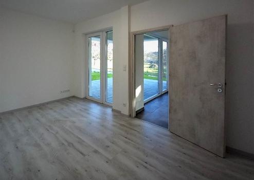 Das Wohnzimmer hat eine gut orientierte überdachte Terrasse mit direktem Zugang vom Schlafzimmer.