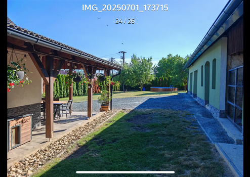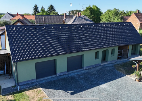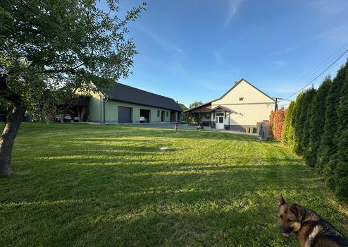 A melléképület fele 60 m² garázs, ami 2 elektromosan nyíló kapuval
