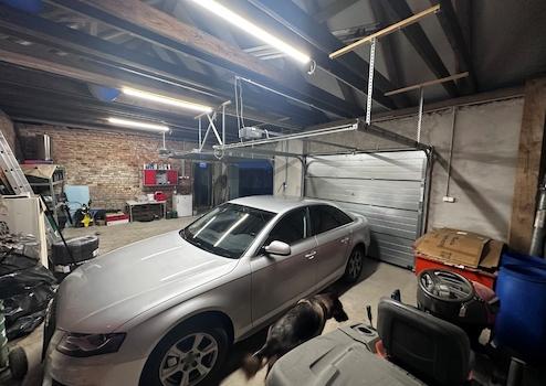 Die Hälfte des Nebengebäudes ist eine 60 m² große Garage mit zwei elektrisch zu öffnenden Toren. Die andere Hälfte verfügt über weitere Nutzflächen und Lagerräume.