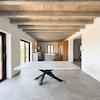 Polierte Betonböden und sichtbare Holzbalken