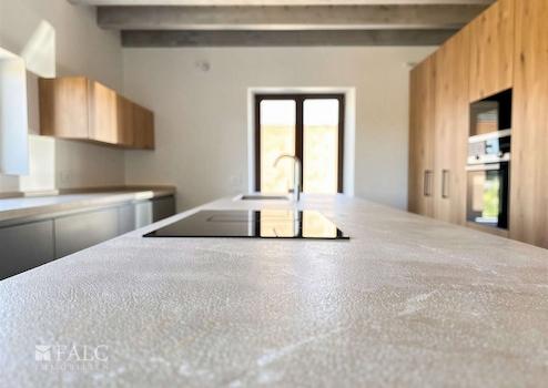 • Maßgefertigte Designküche mit Naturstein