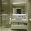 Das Badezimmer ist mit moderner und hochwertiger Einbausanitärkeramik ausgestattet, einschließlich einer Ideal Standard Tesi Konsole-WC-Schüssel, einer Tece Einbauspülkasten mit Doppelspülung, einem Ideal Standard Strada II Waschbecken und Armaturen für das Waschbecken und die Dusche/Badewanne von Hansgrohe Vernis.