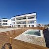 Das Gebäude liegt 120 Meter vom Meer und Strand entfernt und verfügt über einen Gemeinschaftspool. Jeder Wohnung gehört ein Außenstellplatz an.