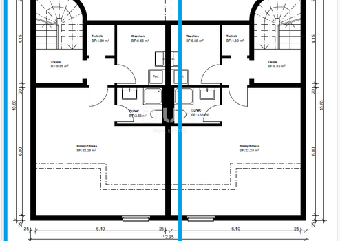 Es umfasst einen Heizraum, ein großes Badezimmer, einen Hauswirtschaftsraum und einen großen Raum, der als Wellnessbereich, Fitnessraum, Kinderspielzimmer o. Ä. genutzt werden kann.