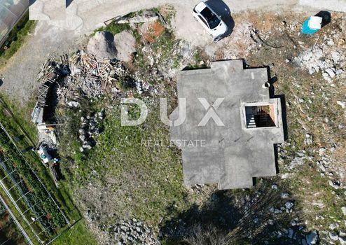 IČIĆI, POLJANE – 1960 m² großes Grundstück mit 2 begonnenen Bauten und Panoramablick aufs Meer für ein Einfamilienhaus/eine Villa/eine Ferienwohnung/ein Ferienhaus mit Pool
