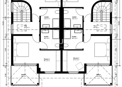 - Ein zweites Haus mit 450 m² (Baugenehmigung) + Pool – auch hier sind alle Nebenkosten (Wasser, Strom, Telefon) bezahlt. Dieses Haus besteht eigentlich aus zwei Doppelhaushälften (oder zwei dreigeschossigen Wohnungen), jeweils mit Keller, Erdgeschoss, erstem Obergeschoss und Dachgeschoss, die durch eine Innentreppe verbunden sind: