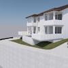 Das Baugrundstück liegt 1,2 km Luftlinie vom Meer entfernt, bietet einen freien Panoramablick aufs Meer und ist nach Süden ausgerichtet.
