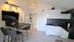 Die Wohnung mit einer Fläche von 30 m² ist funktional aufgeteilt und besteht aus einem Schlafzimmer, einem Badezimmer sowie einem offenen Wohnbereich mit Küche, Essbereich und Wohnzimmer, mit Zugang zur Terrasse. Von der Terrasse aus besteht ein teilweiser Meerblick.