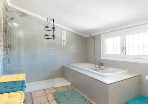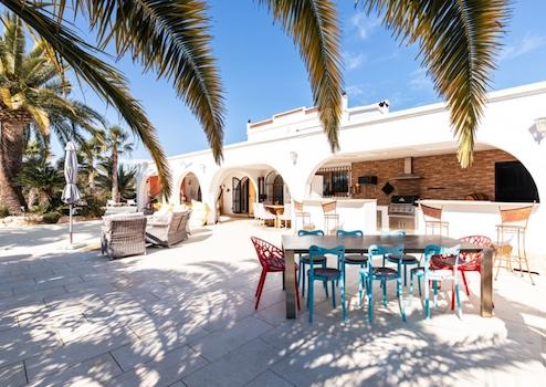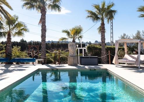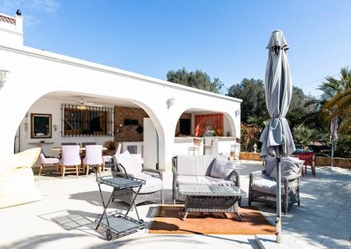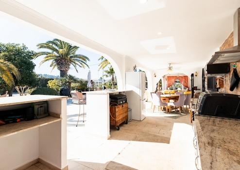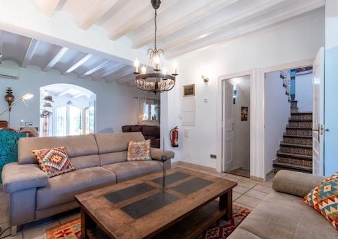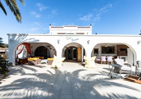 Nur wenige Minuten vom Stadtzentrum und der Küste entfernt, stellt dieses makellose, renovierte Anwesen das perfekte Gleichgewicht zwischen dem Charme des spanischen Landes und der Funktionalität einer modernen, hochwertigen Renovierung dar. Der Zugang zur Immobilie, sei es über den Fußweg oder durch die elektrischen Tore, führt zu einem großzügigen Parkplatz mit überdachten Stellplätzen für vier Fahrzeuge, was die Weitläufigkeit und Ordnung, die das gesamte Grundstück prägen, bereits antizipiert.