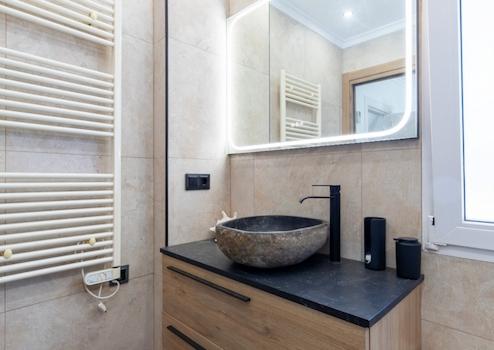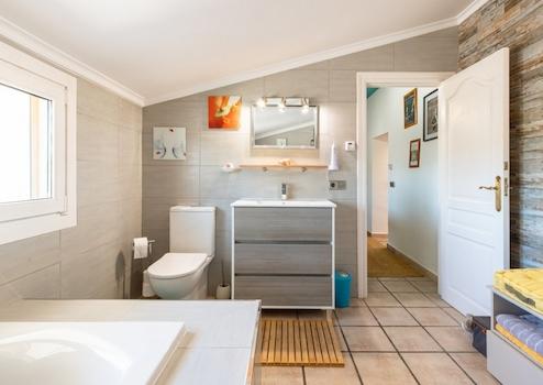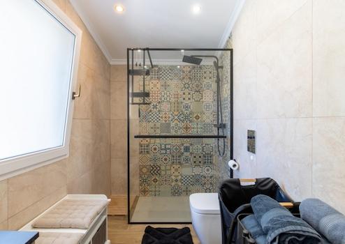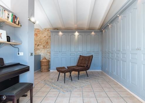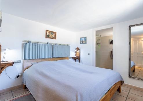 Das Wohnhaus ist intelligent auf drei Ebenen verteilt, wo Naturstein und originale architektonische Details mit einer umfassenden technischen Renovierung harmonieren. Der Ruhebereich besteht aus drei Hauptschlafzimmern und einem zusätzlichen Durchgangsraum, der derzeit als Büro genutzt wird und Zugang zu einem großzügigen Badezimmer mit Dusche und Badewanne bietet. Darüber hinaus verfügen die beiden Nebenräume über den Komfort eigener Badezimmer mit Dusche, ergänzt durch eine separate Gästetoilette für zusätzliche Funktionalität.