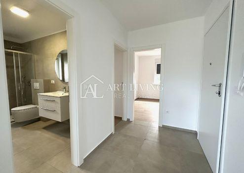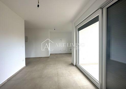 Die Wohnung zeichnet sich durch einen funktionalen Grundriss und viel Tageslicht aus. Der zentrale Bereich besteht aus einem geräumigen Wohnzimmer mit Küche und Essbereich mit direktem Zugang zum Garten. Außerdem gibt es zwei komfortable Schlafzimmer, ein Badezimmer und eine 4,28 m² große Loggia, die ganzjährig zusätzlichen Platz zum Verweilen im Freien bietet.