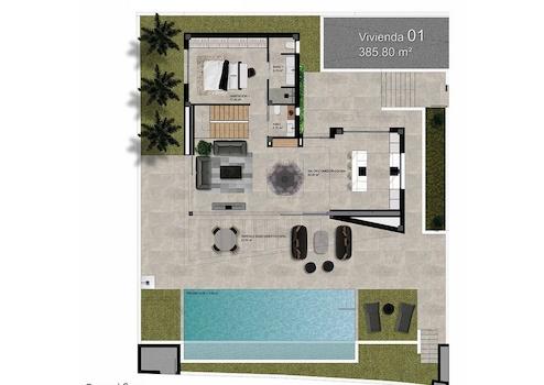 Diese modernen Villen mit ihrer überaus attraktiven Architektur verfügen über eine konstruierte Fläche von ca. 307 m² (inklusive Terrassen) mit