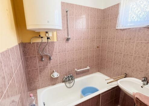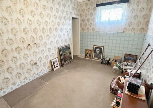 Das Haus ist renovierungsbedürftig, wird mit Gaskonvektoren und einem Kachelofen beheizt.