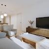 Gegen Aufpreis auch bezugsfertige Übergabe - die Objekte werden also komplett neu eingerichtet mit Möbeln, einer Einbauküche mit E-Geräten und einer Grundausstattung an Küchen Groß- und Kleininventar (Waschmaschine, Kaffeemaschine, Bügeleisen Töpfe, Porzellan, Besteck etc.) sowie Bettwäsche, Handtüchern, Lampen und Vorhängen und sind somit sofort bewohnbar. Der Stil der Einrichtung ist wählbar.