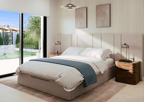 Die hochwertige Ausstattung der Wohneinheiten beinhaltet unter anderem PVC-Fenster mit Doppelverglasung und Rollläden, gepanzerte Wohnungstüren, moderne Einbauküchen mit Dunstabzugshaube, erstklassige Sanitärobjekte, Fußbodenheizung in Bädern und Vorinstallation einer Klimaanlage. Die privaten Gärten werden angelegt und mit einem automatischen Bewässerungssystem versehen und auf den Dachterrassen werden eine Außendusche, ein Außengrill und ein Wasserhahn installiert. Alle Wohnungen haben einen Tiefgaragenplatz.