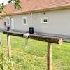 Für die Pferde gibt es einen offenen Stall mit gewärmter Tränke, ein Heulager und eine Sattelkammer.