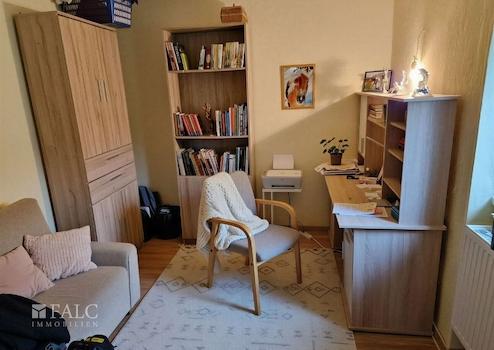 - rechts durch den Flur gelangt man in ein Zimmer, das welches als Büro dient und Parkett verlegt ist