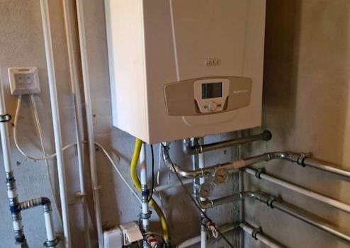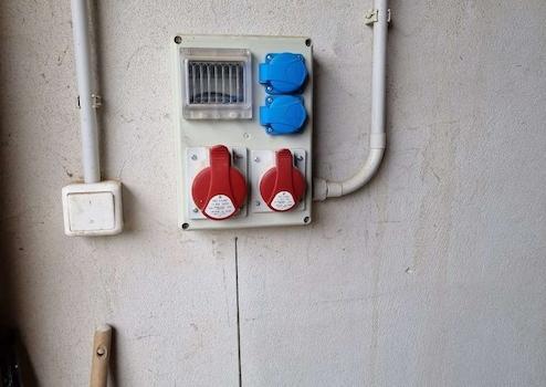 - Anschluss an den Hausbereich gelangt man dann von außen in die Sattelkammer, wo auch die komplette neue Elektrik, die Gastherme und die Pumpe zur Einspeisung des Brunnenwassers installiert wurde
