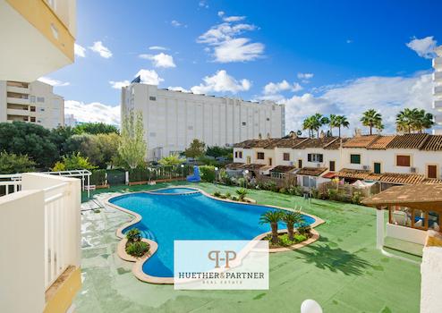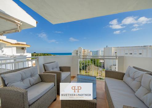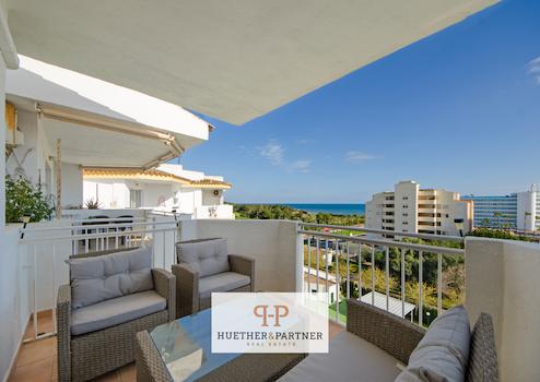 Strandnahe und möblierte Meerblick-Wohnung in Pool-Anlage mit Balkon