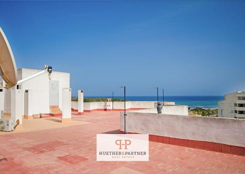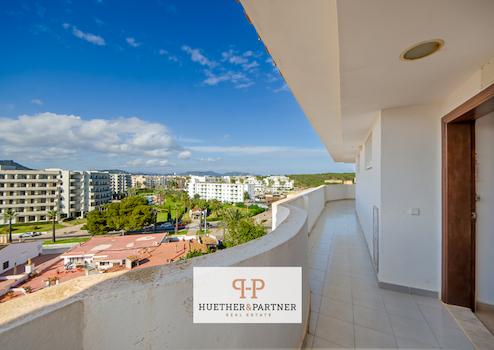 Diese ansprechende Wohnung liegt im 6. Stock, mit Aufzug, einer weitläufigen Appartementanlage. Dank der erhöhten Lage – darüber befindet sich lediglich die gemeinschaftlich genutzte Dachterrasse – sowie der östlichen Ausrichtung genießt man einen herrlichen Ausblick auf das Meer und die Landzunge des Naturschutzgebiets Punta de N’Amer.