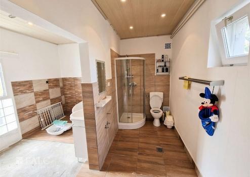 Das Haus wurde 1996 in solider Massivbauweise (Betonsockel, Ziegelmauerwerk, Ziegeldach, Holzfenster und -türen) errichtet und in den letzten Jahren schrittweise modernisiert. Es gibt keine aufsteigende Feuchtigkeit. Ein Wasserschaden im Erdgeschoss durch einen geplatzten Boiler ist bereits vollständig ausgetrocknet, die betroffenen Wände werden noch frisch gestrichen.