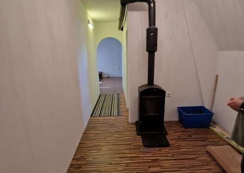 Die Beheizung erfolgt wahlweise über einen Circo-Gaskessel oder über drei gemütliche Holzkamine. Für Warmwasser sorgt ein Elektroboiler.