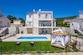 Das komfortable Fertighaus, teilweise mit Stein verkleidet, fügt sich in Form und Farbe harmonisch in die Umgebung ein und erstreckt sich über drei elegant möblierte und bestens ausgestattete Etagen mit einem funktionalen Grundriss.