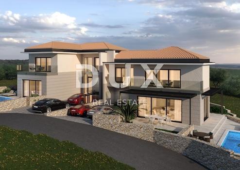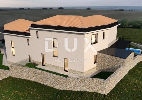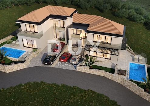 Diese besondere Doppelhaushälfte befindet sich an einem wunderschönen Ort auf der Insel Krk. Es liegt auf einem Hügel über dem Meer mit einem wunderbaren Blick darauf. Es hat 172 m2 und zwei Etagen. Im Erdgeschoss gibt es eine Eingangshalle, ein großes Zimmer, ein Badezimmer, einen Technikraum, eine Küche mit Esszimmer und ein großes Wohnzimmer, das sich zu einem gepflegten Garten mit Swimmingpool, Liegewiese und Abstellraum öffnet Zimmer. Im Obergeschoss befinden sich drei Schlafzimmer, jedes mit eigenem Bad und Ausgang zum Balkon. Die Anlage verfügt über zwei Parkplätze.