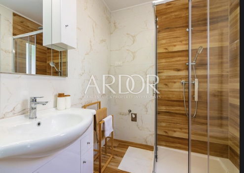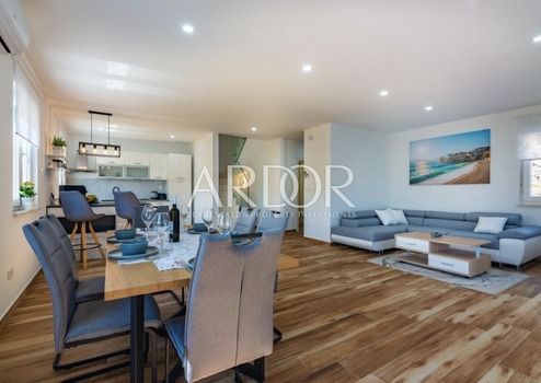 In ruhiger Lage in Mučići, nur 10 Autominuten von Opatija entfernt, wird eine modern ausgestattete Wohnung in einem Haus mit einer Wohnfläche von 125 m² zur langfristigen Vermietung angeboten. Die Wohnung bietet vollständige Privatsphäre und Ruhe ohne Verkehrslärm und ist somit ideal für Familien oder Personen, die eine hochwertige und angenehme Wohnumgebung in Meeresnähe suchen.
